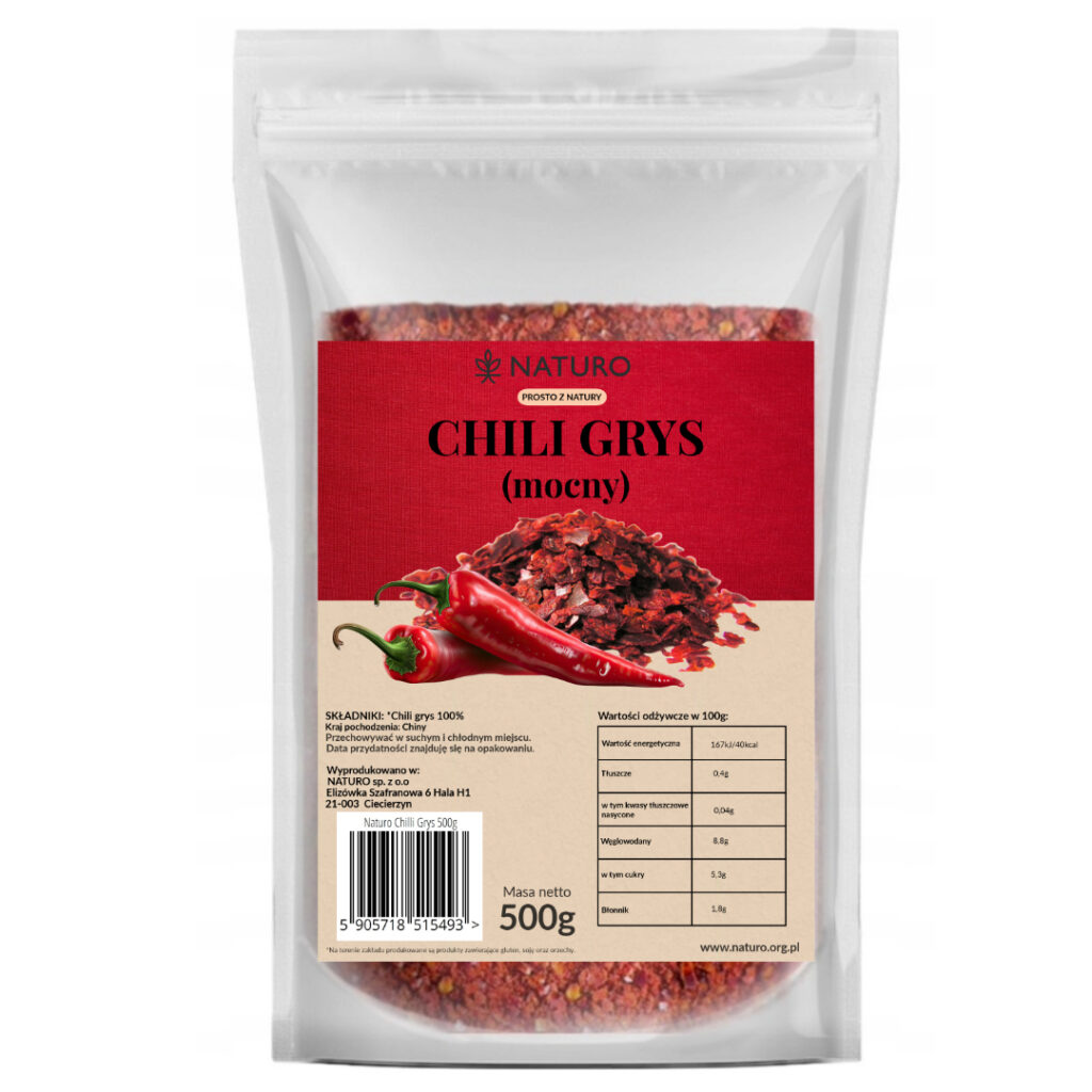 Chili Grys (mocny) 500g Naturo Dary Ogrodu – Gwarancja Prawdziwego Smaku Prosto z Natury – Dla Osób na Diecie Bezglutenowej