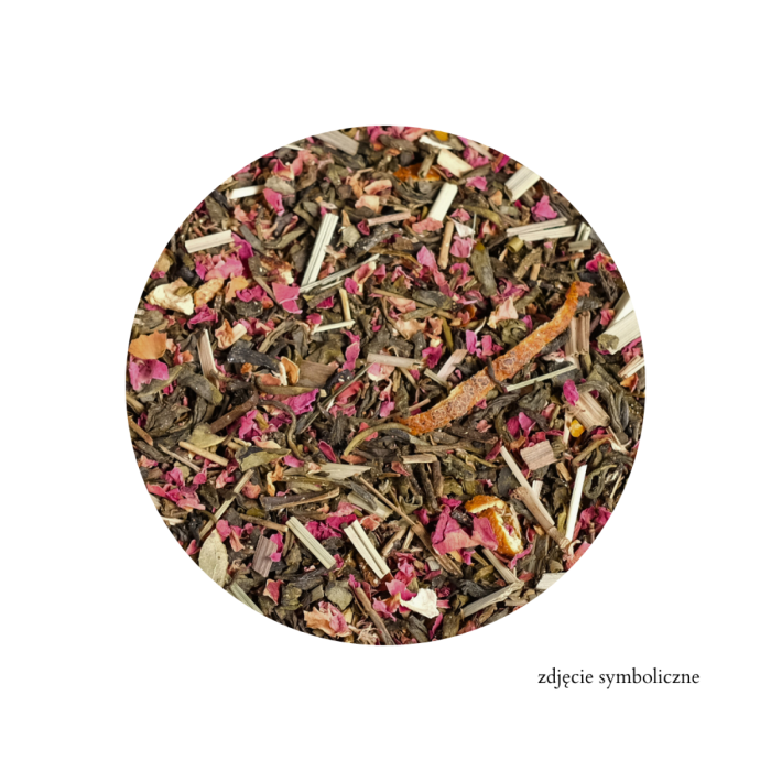 liść lotosu, pomarańcz skórka, kwiat róży, trawa cytrynowa, rodzynka, aromat, herbata Na terenie zakładu wykorzystywane są: gorczyca, gluten, orzechy i nasiona sezamu. Wyprodukowano w Polsce. Sposób przygotowania i przechowywania: Przygotowywanie: 1-2 łyżeczki herbaty zalej wodą o temperaturze 70-90 stopni Celsjusza. Przykryj i odstaw na 5 minut. Po tym czasie oddziel fusy od naparu. Herbatę można parzyć wielokrotnie. Smacznego! Przechowywanie: przechowywać w chłodnym, suchym i zacienionym miejscu. Wyprodukowano dla: MIX BRANDS SP. Z O.O. Odlewnicza 7, 03-231 Warszawa NIP: 5223112460