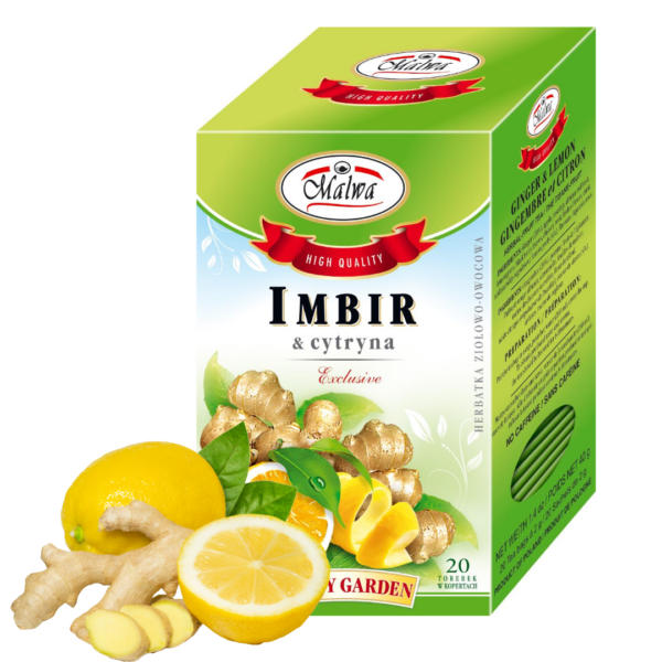Herbatka Ziołowo-owocowa Aromatyzowana Imbir I Cytryna 20 Torebek Malwa – Doskonałe Uzupełnienie Zdrowego Stylu Życia – Dla Świadomych Rodziców