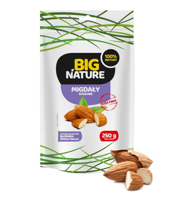 Migdały 250g Big Nature Białko Wapń Zdrowe Tłuszcze Magnez Naturalny EKO Zdrowie Bez GMO Premium
