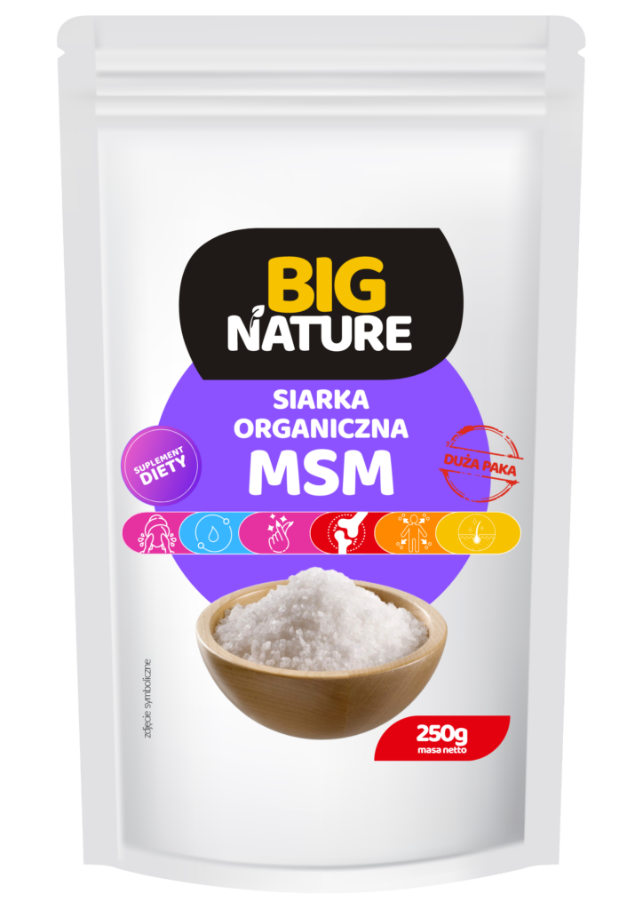 Niezależnie czy jesteś sportowcem, świadomym rodzicem czy miłośnikiem natury – MSM Siarka Organiczna 250g SUPLEMENT DIETY – BIG NATURE to wybór, który mówi sam za siebie.