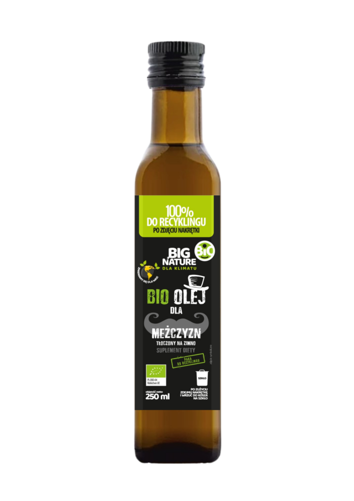 Niezależnie czy jesteś sportowcem, świadomym rodzicem czy miłośnikiem natury – Olej DLA MĘŻCZYZN bio tłoczony na zimno 250ml – BIG NATURE to wybór, który mówi sam za siebie.