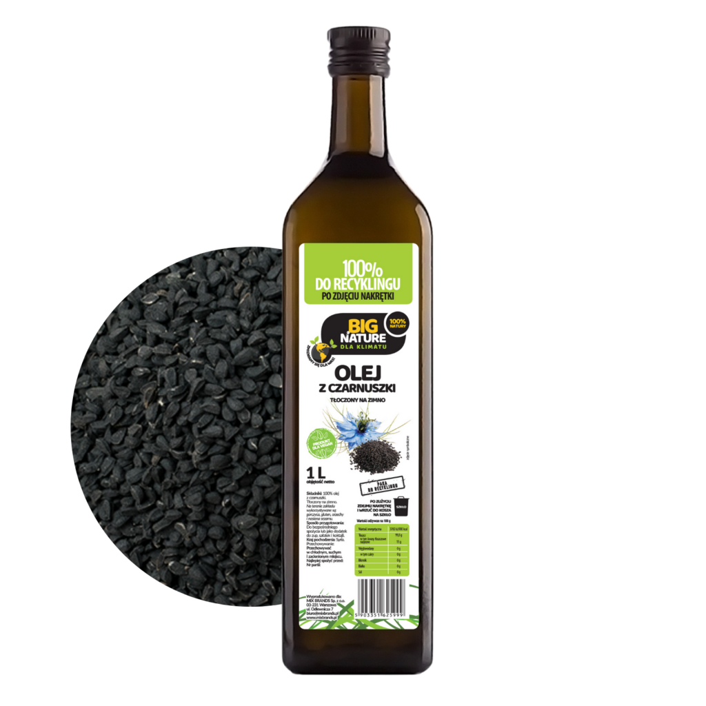 Niezależnie czy jesteś sportowcem, świadomym rodzicem czy miłośnikiem natury – Olej z czarnuszki tłoczony na zimno 1L – BIG NATURE to wybór, który mówi sam za siebie.