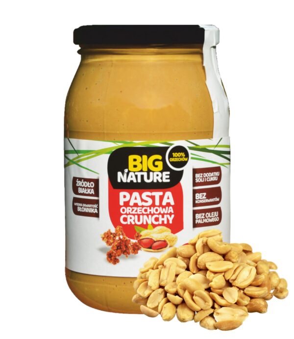 Niezależnie czy jesteś sportowcem, świadomym rodzicem czy miłośnikiem natury – Pasta orzechowa crunchy 1kg – BIG NATURE to wybór, który mówi sam za siebie.