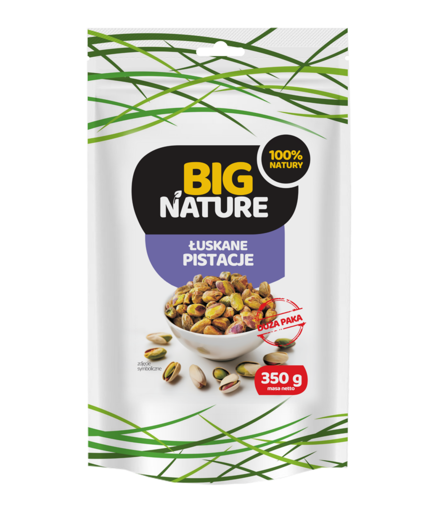 Niezależnie czy jesteś sportowcem, świadomym rodzicem czy miłośnikiem natury – Pistacje prażone solone 350g – BIG NATURE to wybór, który mówi sam za siebie.