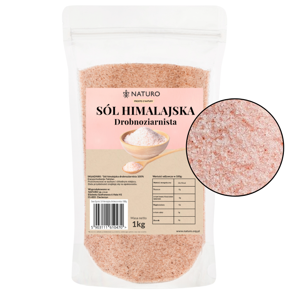 Sól Himalajska Drobnoziarnista Różowa 1kg Dary Ogrodu – Starannie Wyselekcjonowane Składniki Najwyższej Próby – Dla Wegan i Wegetarian