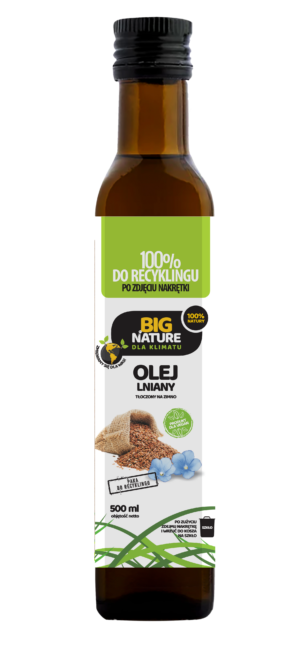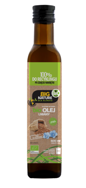 Olej lniany tłoczony na zimno 500ml Big Nature Tłoczony Zimno Omega 3 Odporność Skóra AZS BIO